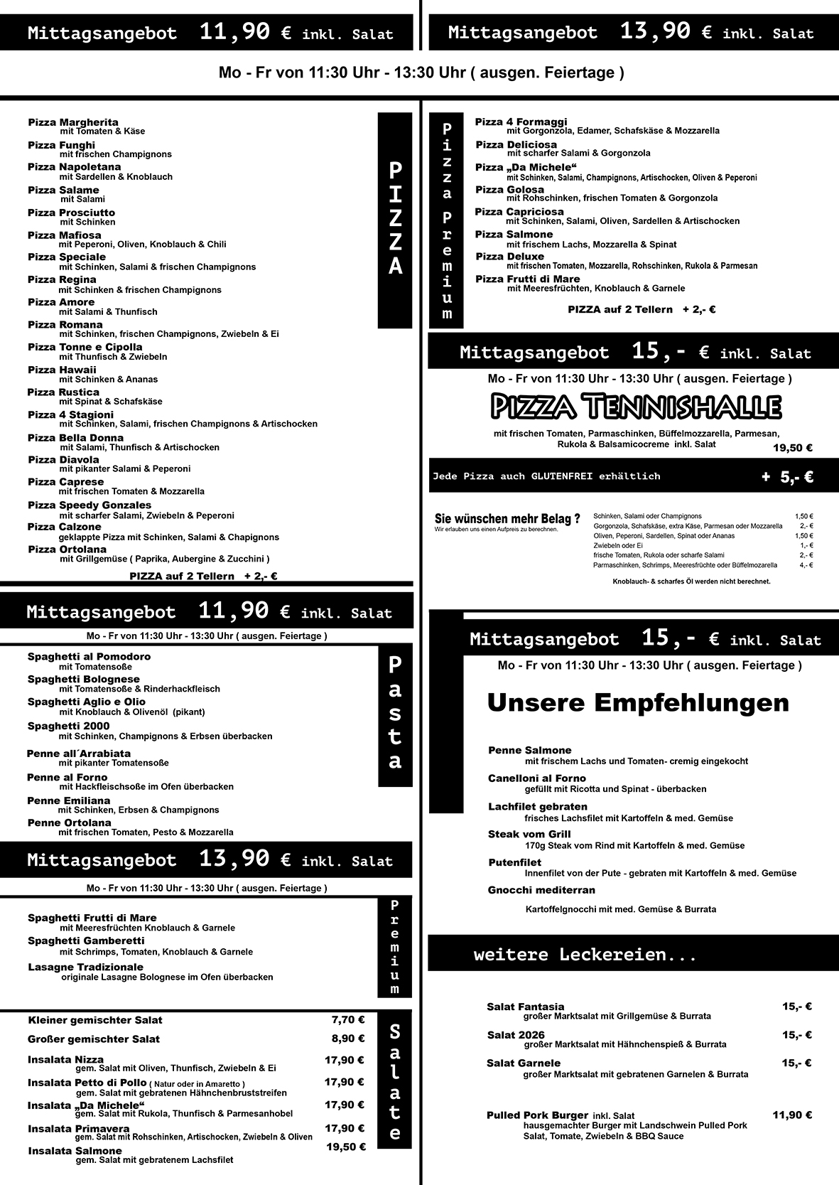 Mittagstisch inkl. Salat ab 11,90 €uro